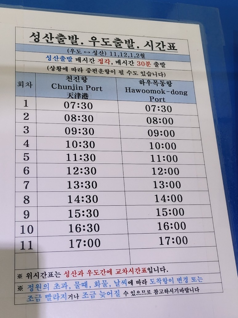 우도 배시간 표 입니다. 꼭 미리 확인하시길 바랍니다. 배가 끊겨서 못 나갈수도 있기때문입니다.