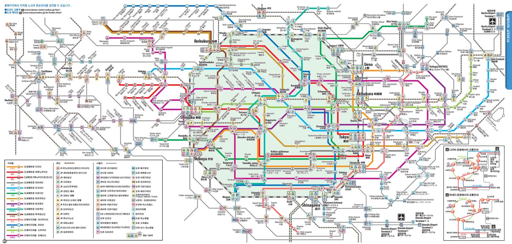 최신 도쿄 노선도 다운받기(JR동일본,지하철,신간센) 한글지도 다운받기