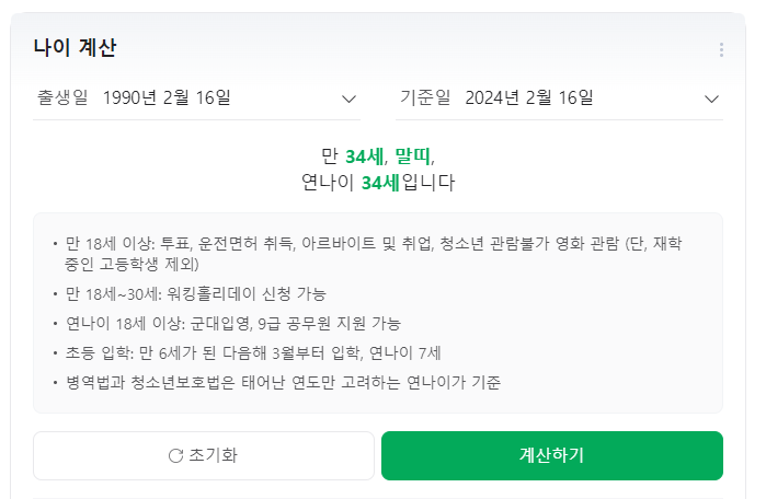 사진=만 나이 계산기(클릭하면 만 나이 계산기 링크로 바로갑니다)