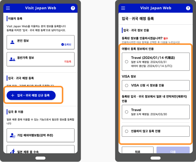 STEP 2입국・귀국 일정 등록