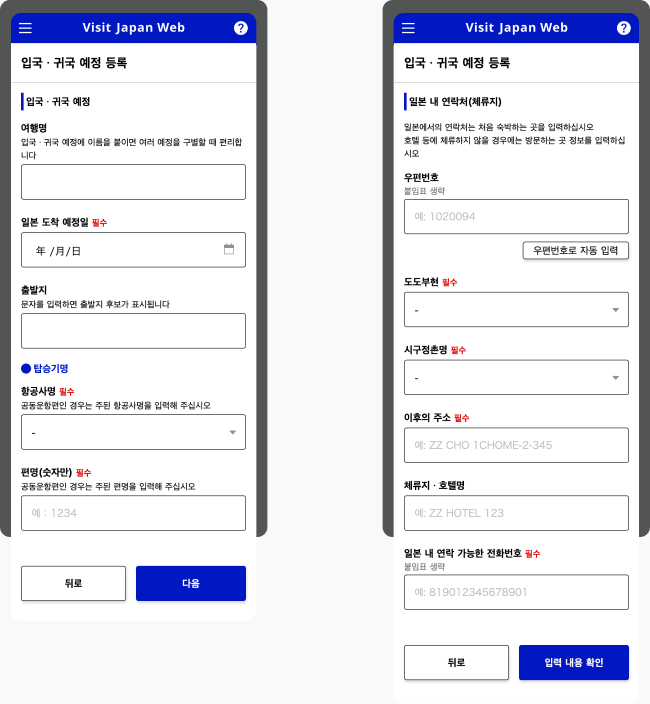 STEP 3입국・귀국 수속의 입력