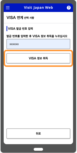 비자 발급번호를 입력한 후「비자정보 가져오기」를 클릭하면 비자정보가 표시됩니다.