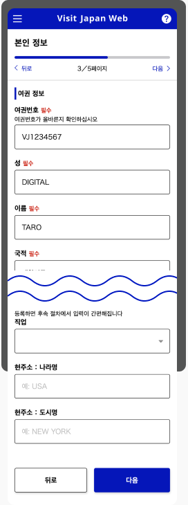 여행사가 대리 입력한 정보나 비자 신청시의 정보를 인용하여 이용할 수도 있습니다.