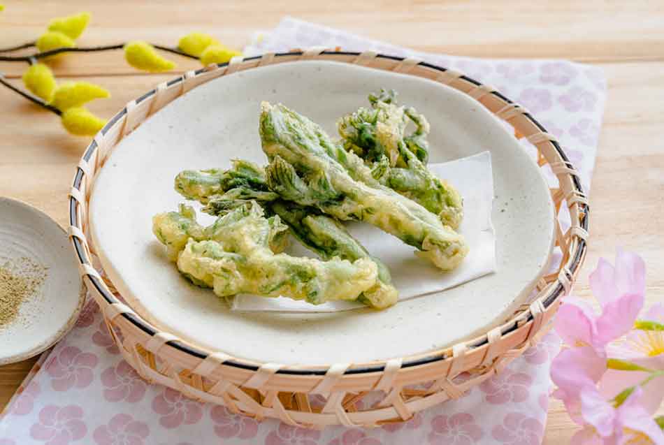 일본요리는 계절성을 특히 중시합니다. ‘제철’이란 식재료를 수확하기 가장 좋은 시기를 말합니다. 새로운 성장의 시기인 봄의 도래와 함께 레스토랑 메뉴에는 부드러운 죽순, 갓 딴 산나물, 봄 양배추, 그리고 바다의 진미 대합과 은빛이 눈부신 학공치 등이 등장합니다. 그 외에도 다양한 식재료가 봄을 즐겁게 만듭니다. 벚꽃 풍미의 라떼와 킷캣 초콜릿 과자 등도 짧은 벚꽃 시즌을 더욱 화려하게 장식합니다. 벚꽃 명소로 유명한 나카메구로 강변 또는 스미다가와 강변에 있는 카페나 레스토랑에서 벚나무 가로수의 벚꽃을 바라보면서 봄을 즐기셔도 좋겠습니다. 백화점 식품매장이나 많은 음식점에서 봄철 식재료를 사용한 도시락도 판매합니다. 각자가 조금씩 사 들고 공원에서 함께 즐길 수 있습니다.