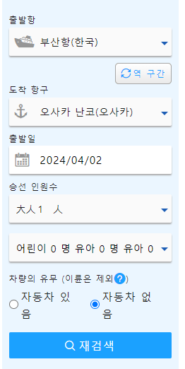 오사카 부산 배편 가격