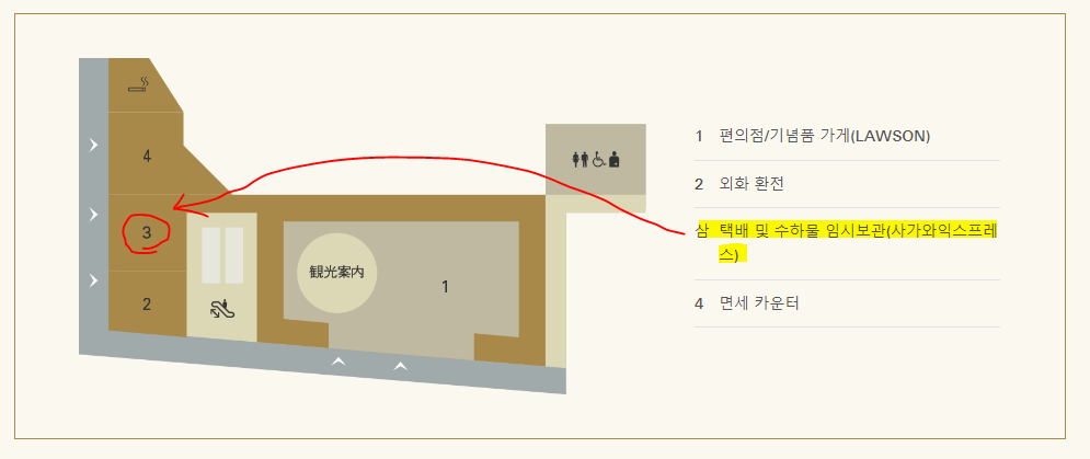 긴자역 짐보관 센터는 긴자식스 1F층 3번에 있습니다. 1층 터미널 긴자 관광 서비스 센터에 방문하면 방문객들은 무료로 여행 가이드 안내를 받을 수 있습니다. 터미널 긴자에서는 영어,한국어로 관광 정보를 제공하고 캐리어 보관도 가능합니다. 이곳의 장점은 단기 수하물 짐보관 서비스로 가격이 저렴하고 안전합니다.