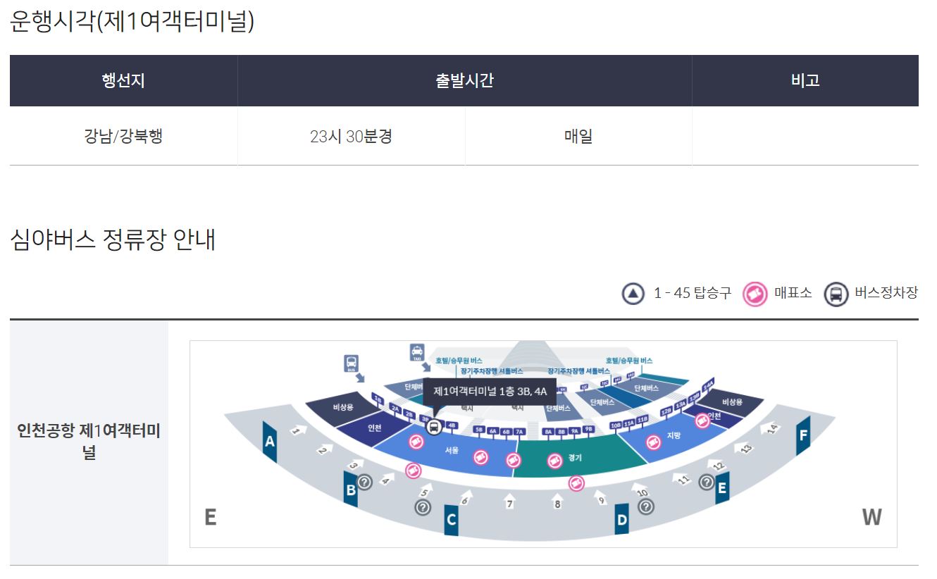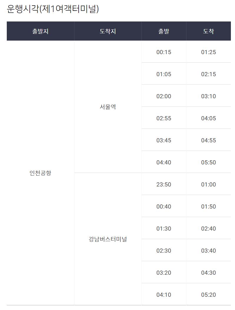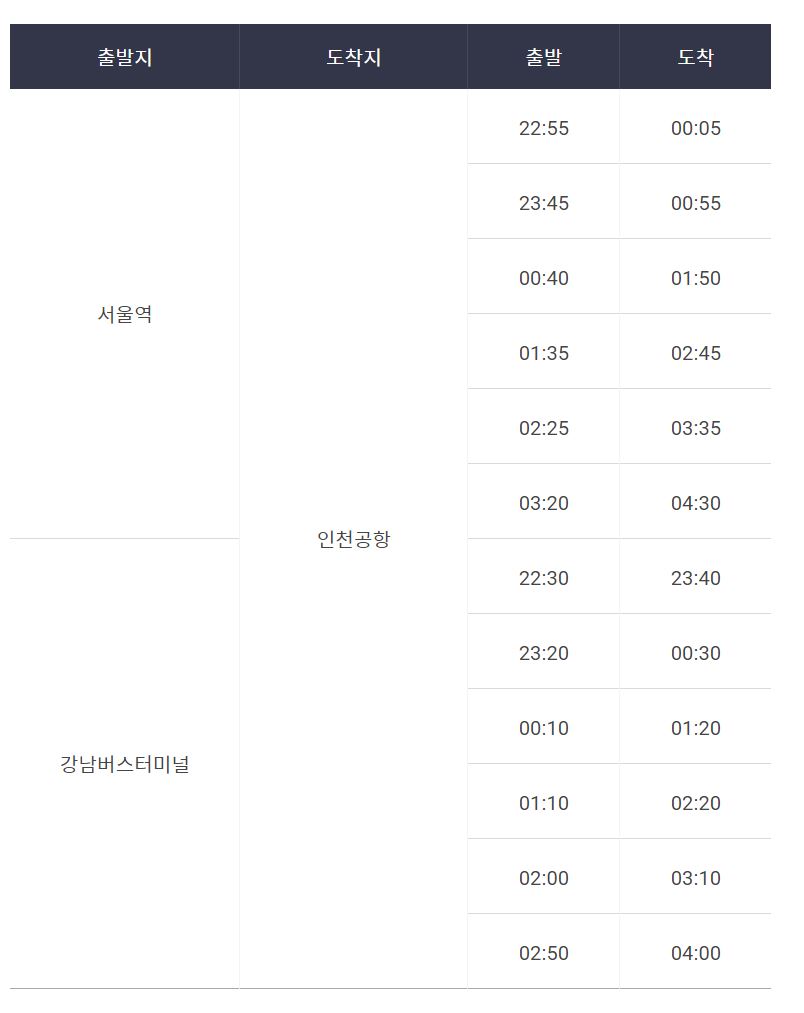 3. 인천공항 리무진 심야버스 운행 시간표