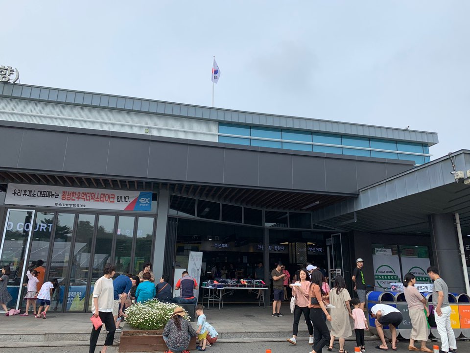 1시간 40분쯤 달렸을 때, 횡성휴게소에서 10분 정도 쉬어갔습니다. 잠시 화장실을 다녀올 수 있었습니다. 몇몇 분들은 휴게소에서 간단히 요기할 수 있는 핫도그 등을 사드셨습니다.
